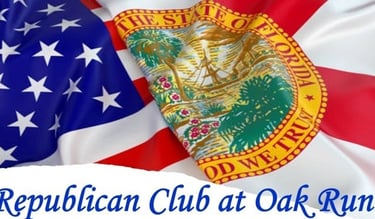 Welcome to the Oak Run Republican Club, where we share events and activities that bring our community together in support of Republican values and initiatives. The Club holds a monthly meeting where important local, state and national leaders and dignitaries often come to speak. At other times, we may focus on special services, issues and information that is important for our community. In addition, we will often have special events scheduled along with a monthly Movie Night. Our meetings are open to and welcome ALL. If you truly support our values and are a registered Republican, you should consider becoming a member. See below for membership information. Meetings are typically held at the Oak Run Palm Grove Club. Special event may at the Orchid Club. Be sure to check each Event for the appropriate location. Maps to both venues are found on our Contact Page.